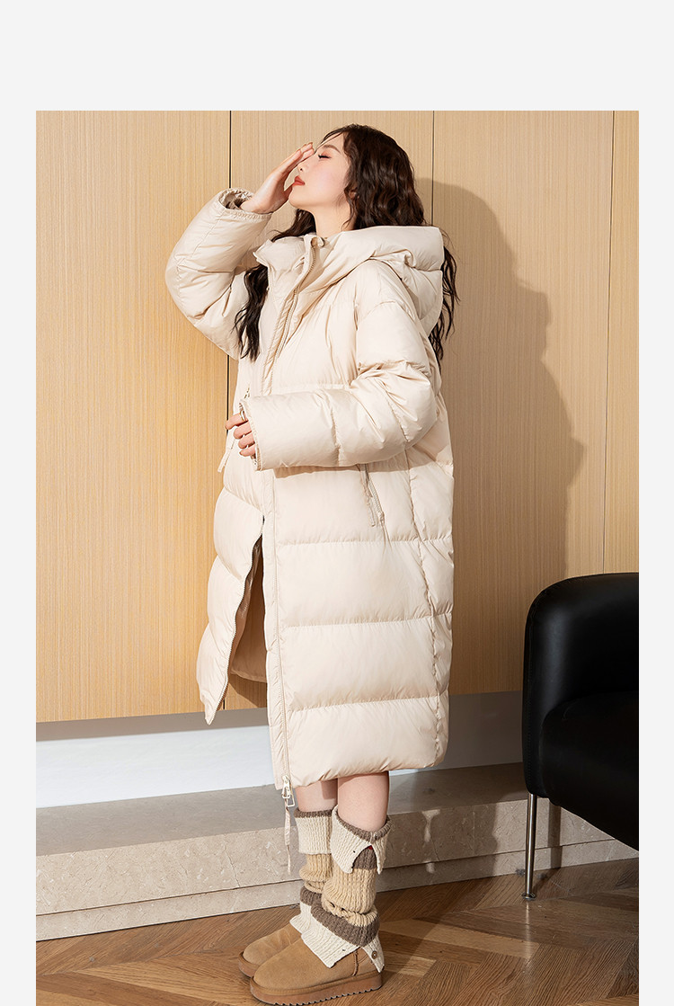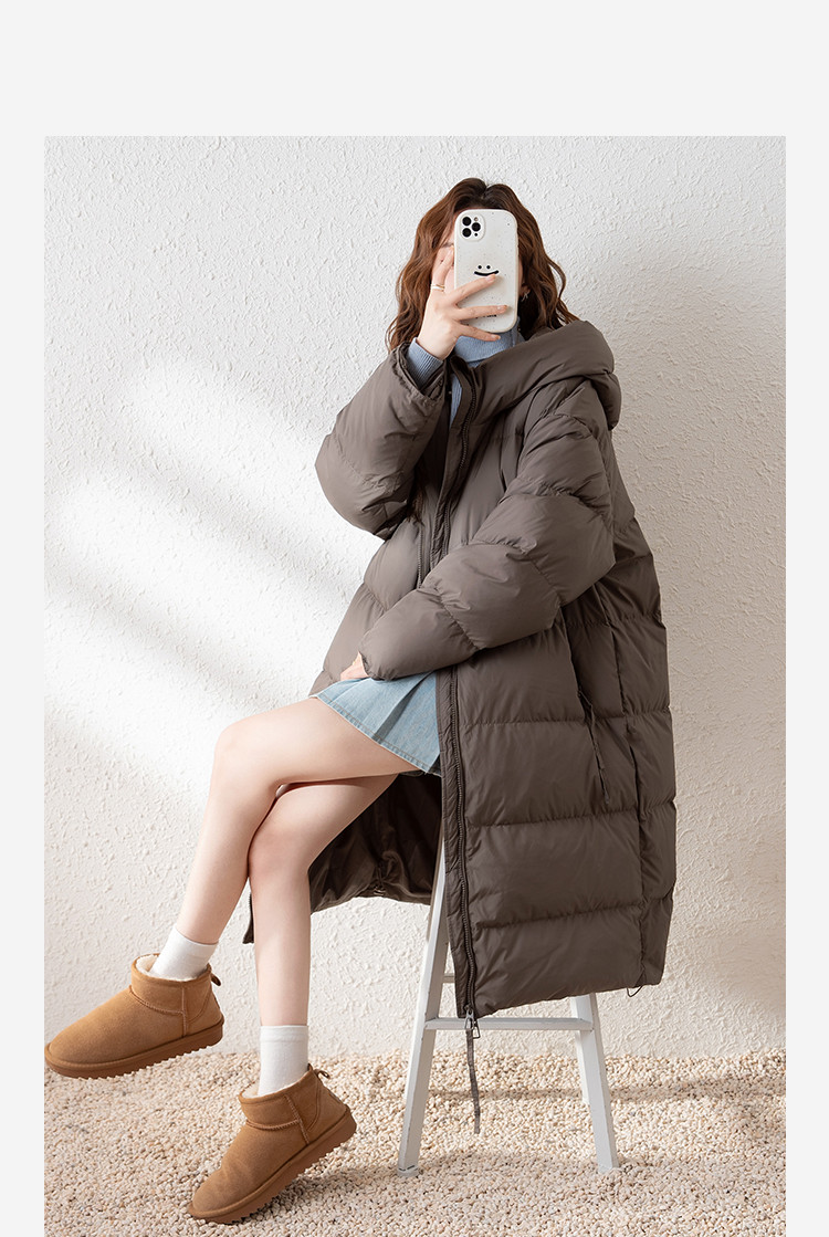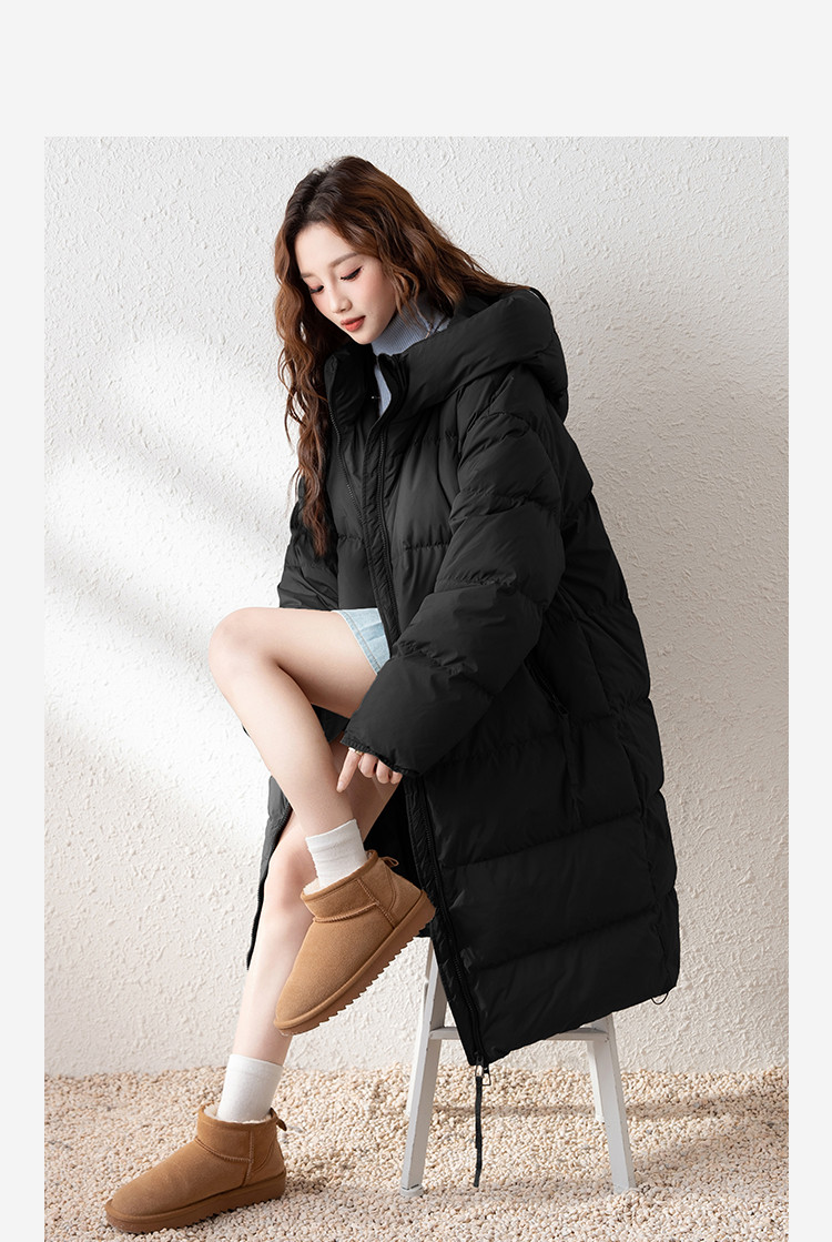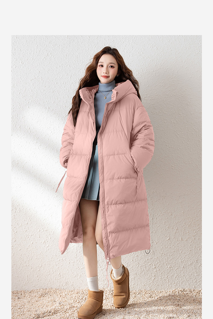 2024冬季女连帽净色长款羽绒服简约温柔百搭清新韩版保暖休闲
