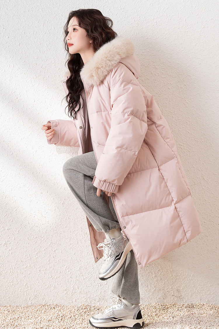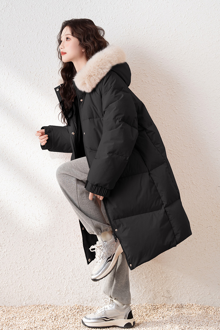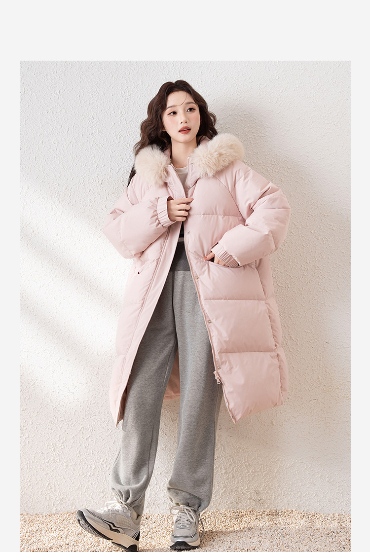 2024冬季女毛领连帽长款羽绒服简约气质温柔保暖百搭休闲韩版