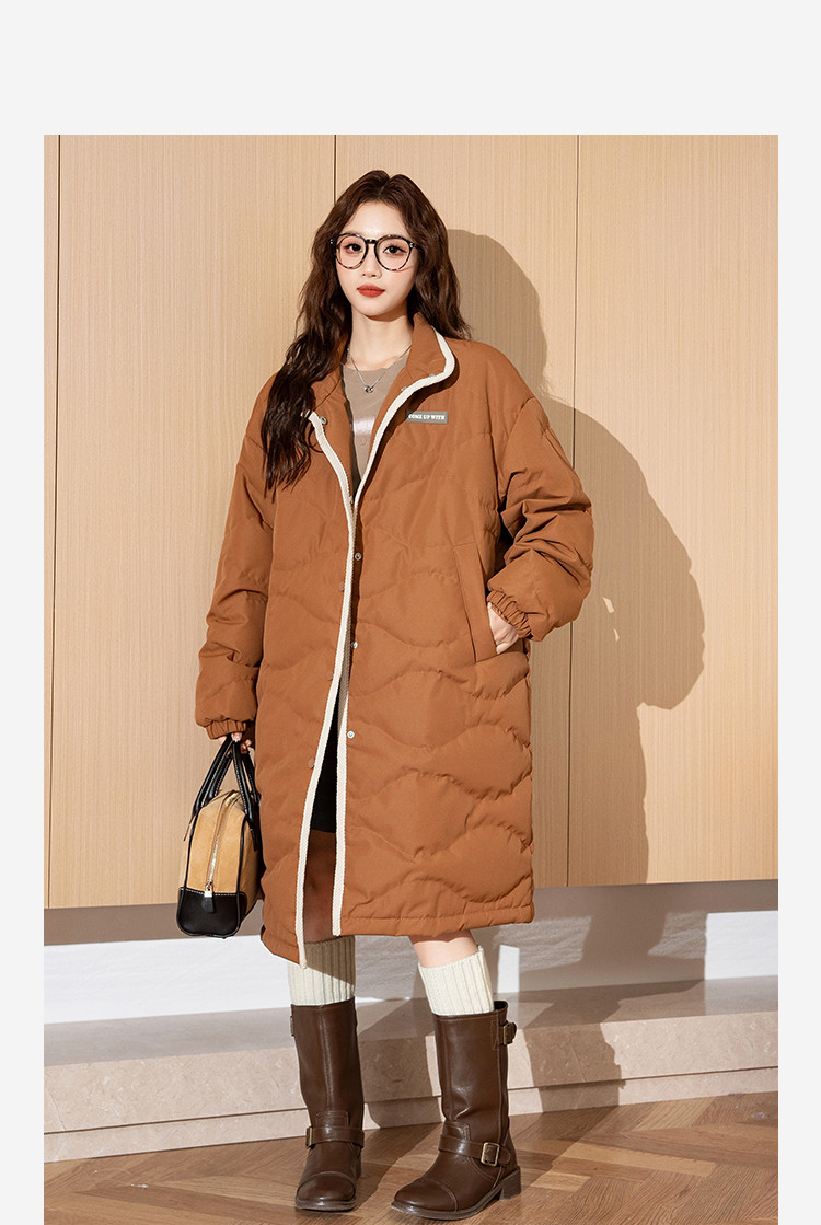 2024冬季女立领菱形格长款羽绒服复古百搭休闲保暖高级感时髦