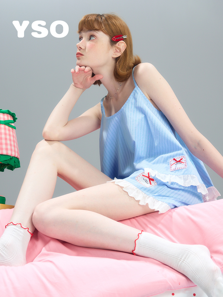 yso【礼物系列】夏季套装女吊带甜美蝴蝶结可爱舒适家居服B