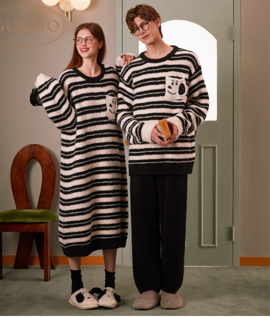 Gukoo/果壳睡衣男冬季派对小狗新款毛绒保暖简约男士家居服套装D