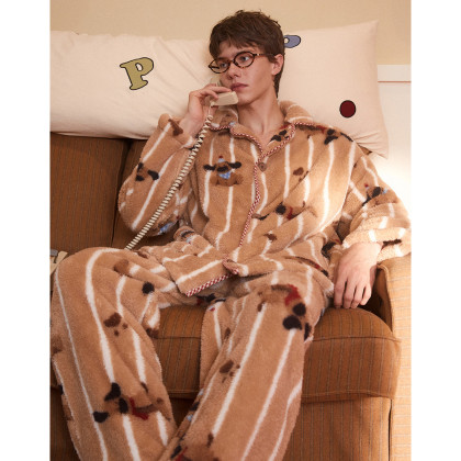 【大鼻子狗联名】睡衣男秋冬加厚款北极绒卡通高级感家居服套装