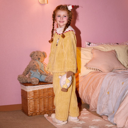 【MIKKO联名】女童睡衣秋冬加绒加厚开衫舒棉绒家居服套装