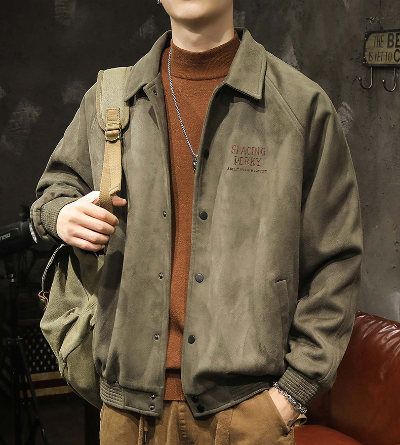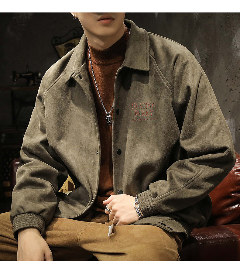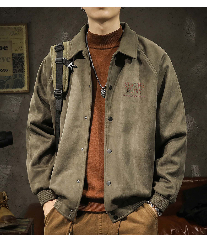 唐狮冬季外套仿麂皮绒保暖厚外套男仿羊羔绒翻领夹克宽松工装外套