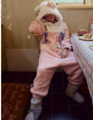 Gukoo/果壳睡衣女冬季HelloKitty联名新款毛绒保暖女士连体衣D