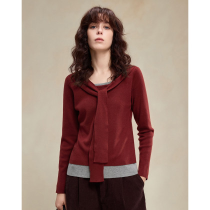 【懒人友好】2026春绵羊毛桑蚕丝混纺线衫假两件撞色披肩女式针织衫