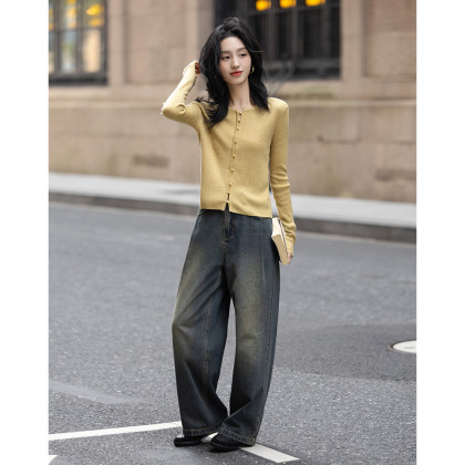 【温柔暖黄针织衫】冬款显瘦气质长袖亲肤感套头衫女