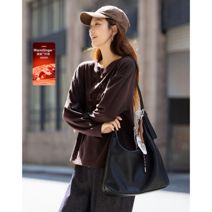 【220G暖姜绒保暖派】冬季简约圆领字母刺绣宽松藏肉女式t恤