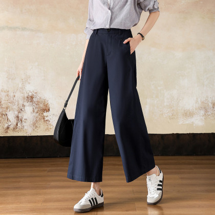 【磨毛100棉】2026春知性半松紧腰宽松九分裤小个子女式休闲裤