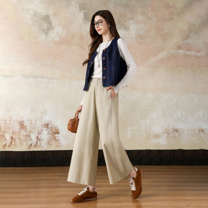 【磨毛100棉】2026春知性半松紧腰宽松九分裤小个子女式休闲裤