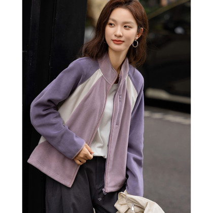 【保暖460G双面绒】冬季城市运动风立领拼色抽绳短款女式外套