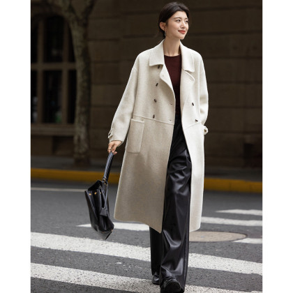 【奢享绵羊毛】冬季双排扣翻领大衣宽松设计感中长款女式毛呢外套