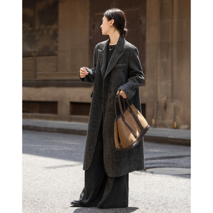 【手工双面呢】冬季摩登风骨绵羊毛混纺大衣翻驳领袋盖直筒女外套