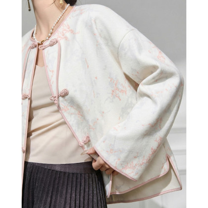 【东方古典风韵】冬季国风新中式对襟盘扣流苏印花短款女式外套