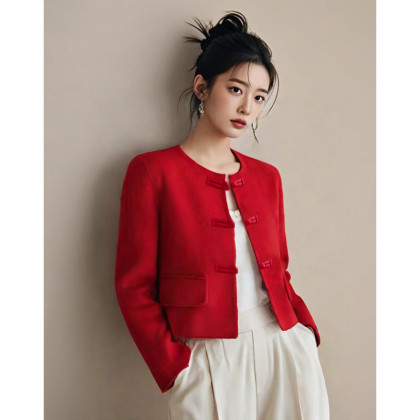 【奢享绵羊毛双面呢】春秋国风新中式盘扣短款气质大衣女式外套