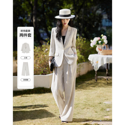 【莱赛尔亚麻混纺套装】2026春智感松弛七分袖上衣一粒扣女式两件套