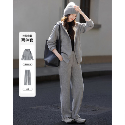 【遛弯套装】冬季智感灰系连帽上衣运动藏肉好搭长裤两件套女时尚