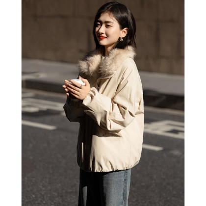 【三防黑科技】冬季可拆毛领小提花北欧棉袖子80G发热棉女棉衣