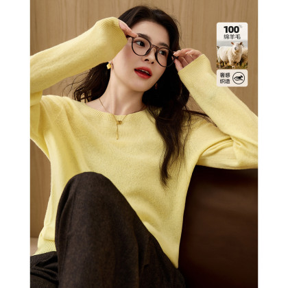 【无缝100绵羊毛】冬季醇柔丰盈圆领线衫微弹包容针织衫女上衣