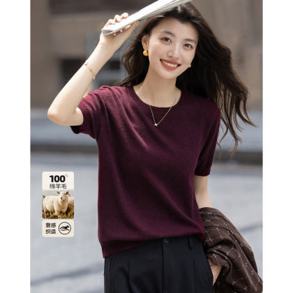 【奢感100绵羊毛】秋季气质圆领线衫肌理感坑条藏肉针织衫上衣