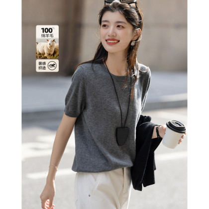 【奢感100绵羊毛】秋季气质圆领线衫肌理感坑条藏肉针织衫上衣