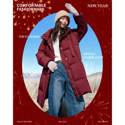 【素羽沐冬】冬季连帽90鸭绒中长款拉链保暖简约通勤女式羽绒服