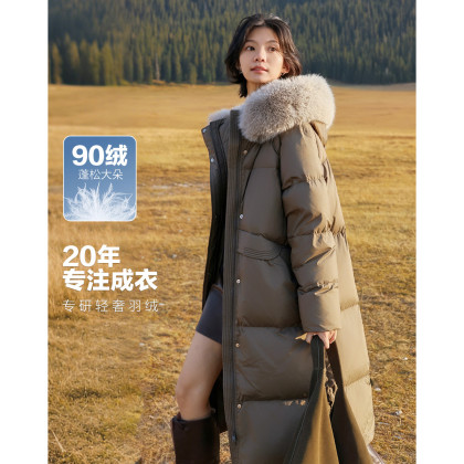 【暖意漫游】冬轻量保暖90鸭绒连帽可拆卸毛领四层工艺女羽绒服