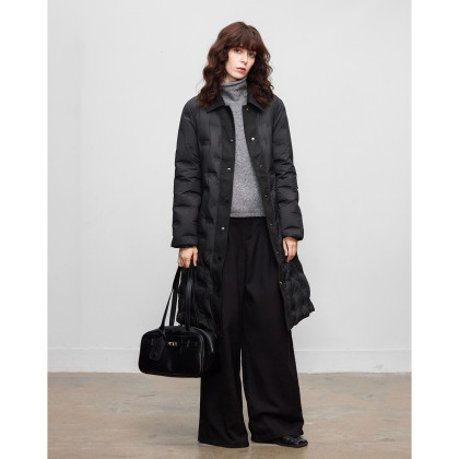 【暗夜星河】冬季高保暖90鸭绒撞色拼接翻领直筒风衣式女羽绒服