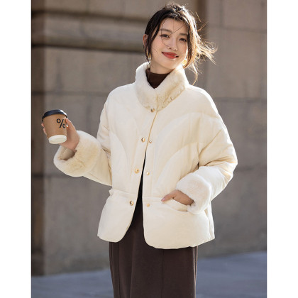 【温柔抗寒】冬季轻量美学90鸭绒獭兔毛立领双排扣女式羽绒服