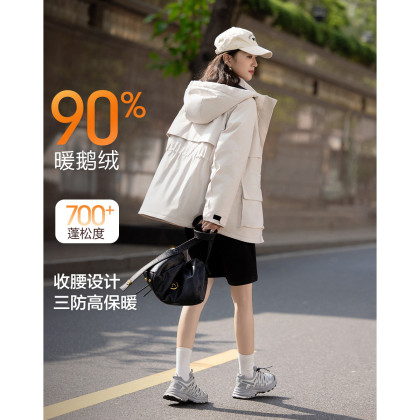 【三防黑科技】冬季保暖90鹅绒小提花北欧棉连帽魔术贴女羽绒服