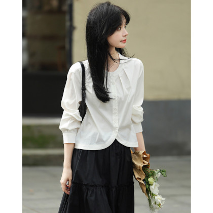 【清冷智感职场】春季松弛氧气云感棉衬衫气质褶裥短衬衣女装上衣