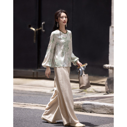 【诗意江南】春秋国风新中式光泽感晕染提花衬衫水滴扣衬衣女装
