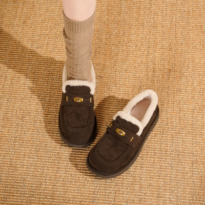 【冬日氛围感】25冬韩系“吉日”仿羊羔毛口加绒内里保暖毛毛鞋