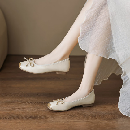 2024夏季甜美蝴蝶结拼色小方头舒软百搭日常通勤女单鞋