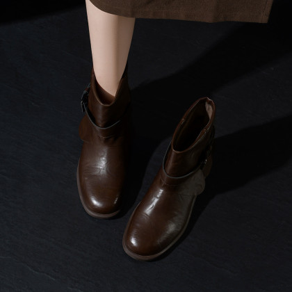 【都市游牧】25冬皮带扣短筒裤靴女极简街头百搭高级感短靴