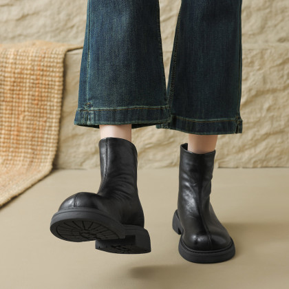 【休闲通勤】25冬简约百搭系带圆头捏褶马丁靴软垫舒适工装靴