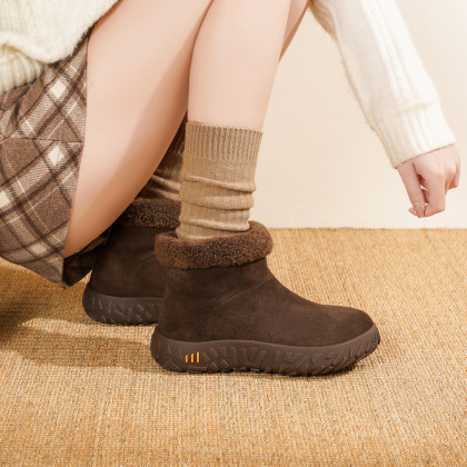 【韩系慵懒】25冬毛口立体榴莲纹底加厚仿羊羔毛保暖短靴雪地靴