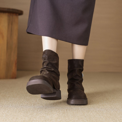 潮酷冬季时尚复古百搭双扣方圆头裤靴堆堆靴西部靴