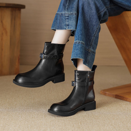 潮酷冬季时尚复古百搭双扣裤靴堆堆靴西部靴