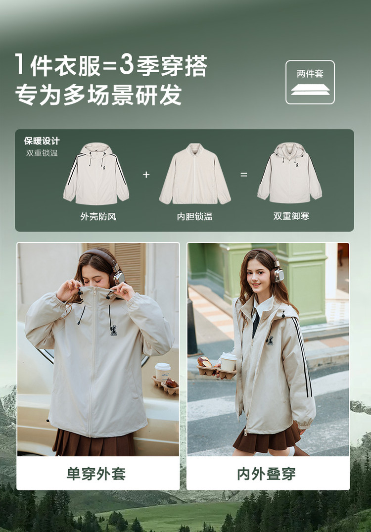 【防水】唐狮新款连帽工装外套女春秋冲锋少年上衣户外运动