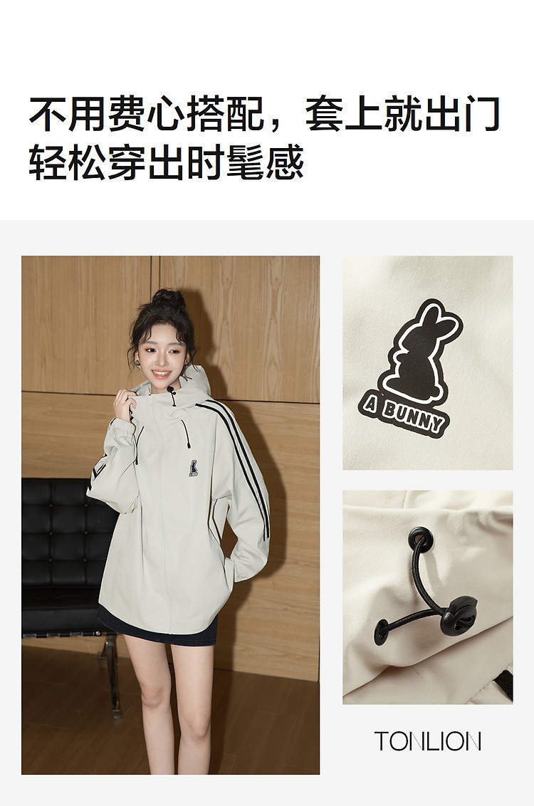 唐狮2026秋季新款女外套连帽冲锋少年黑色宽松女士上衣春秋运动