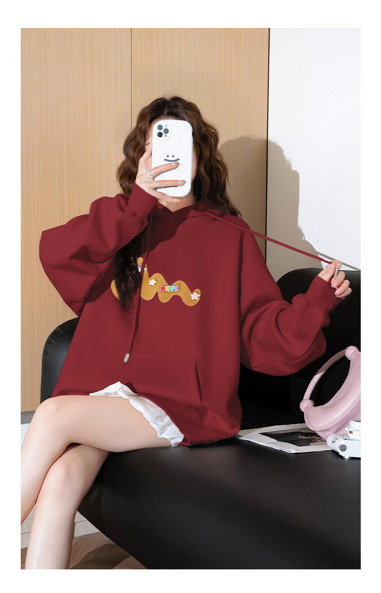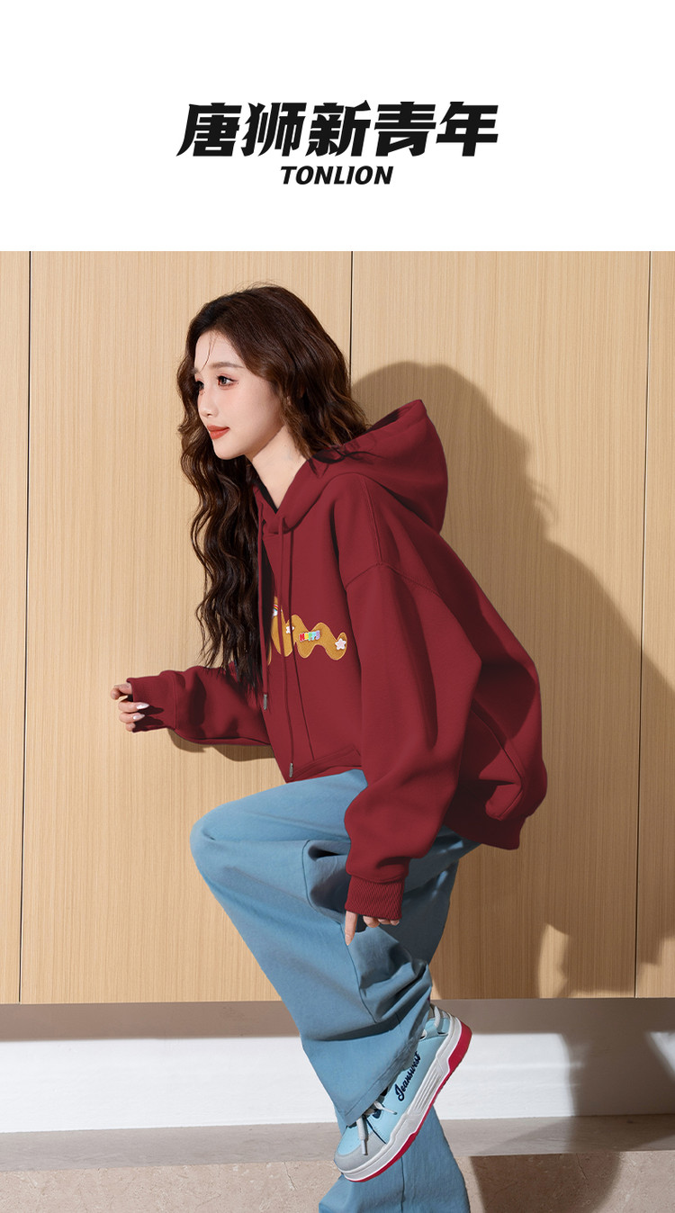 唐狮2026秋季新款针织卫衣女美式魔术贴连帽百搭宽松长袖T恤