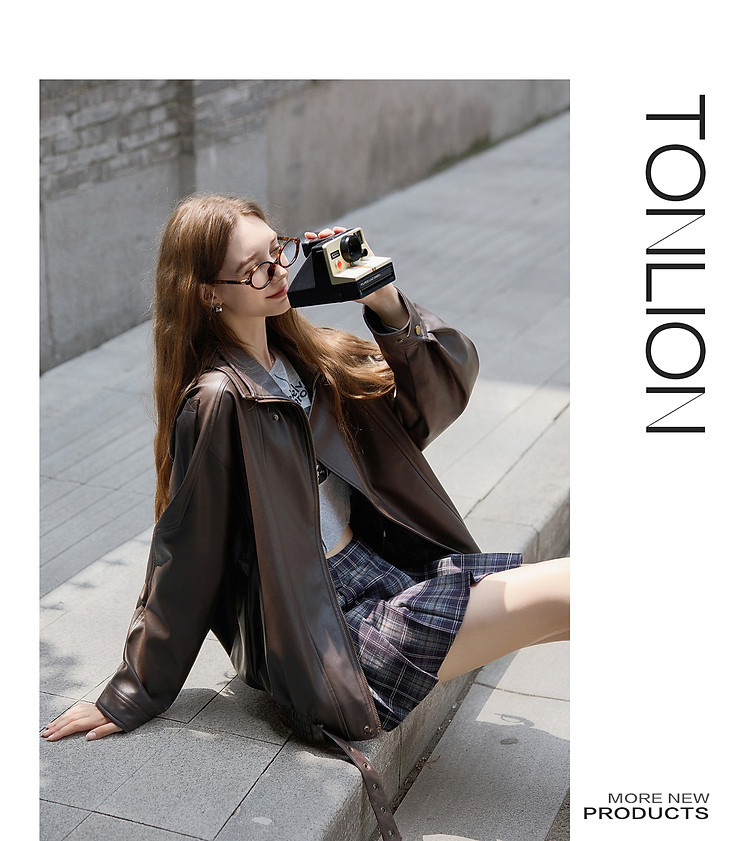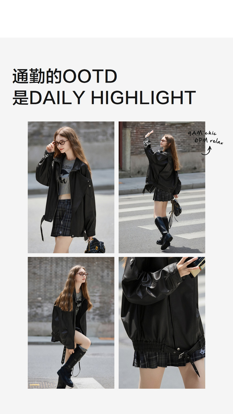 唐狮2026秋季新款外套女重工复古中性机车皮衣外套PU夹克上衣