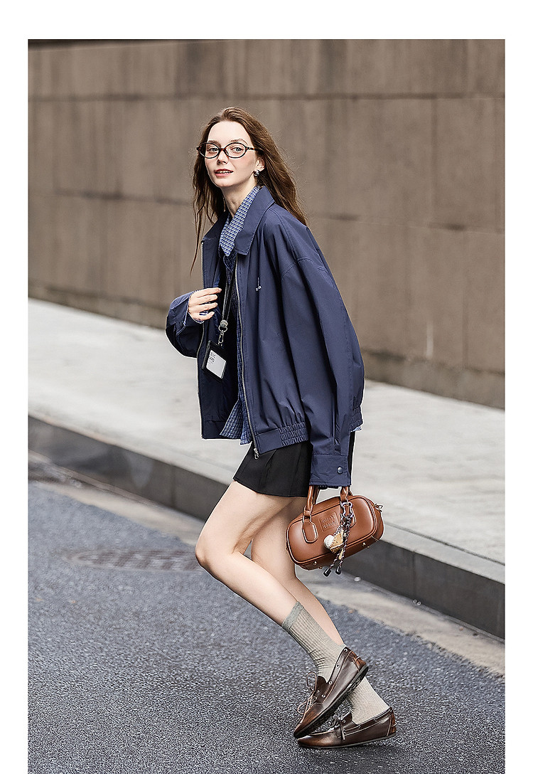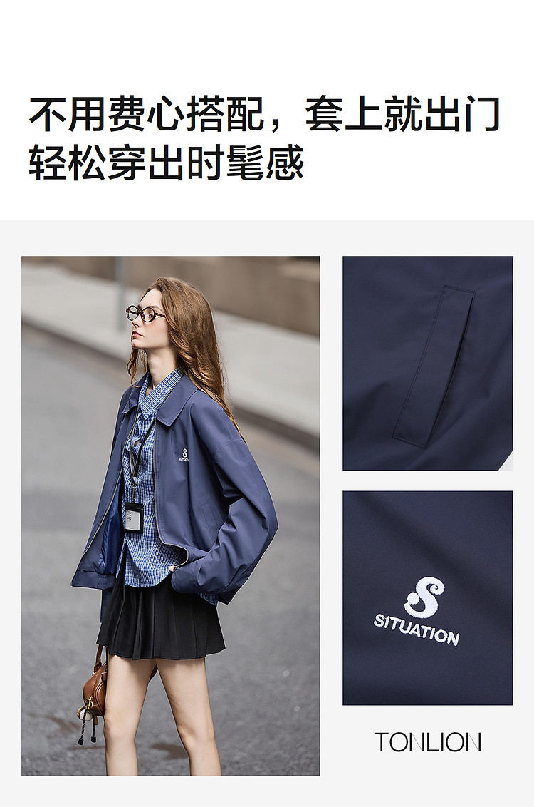 唐狮2025年秋季新款外套女翻领美式复古百搭休闲工装夹克棒球服