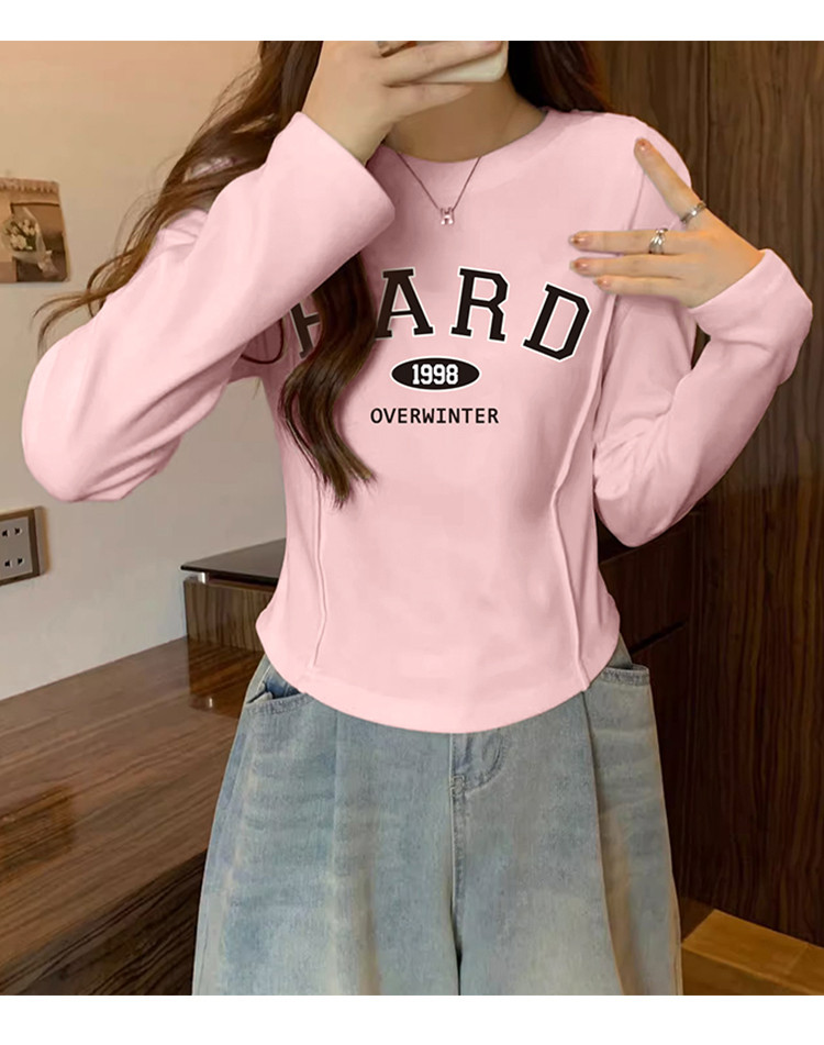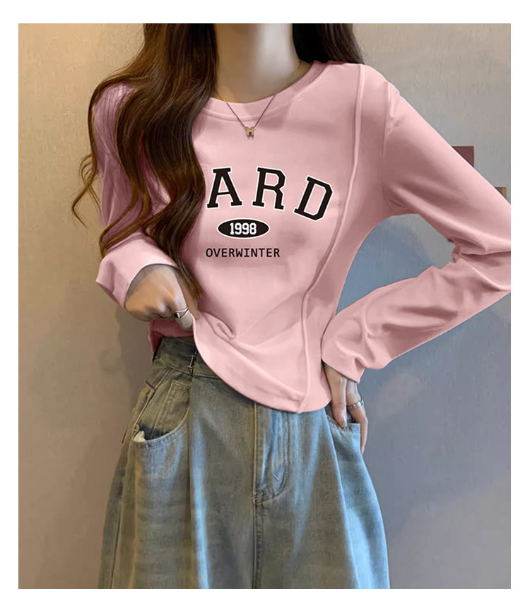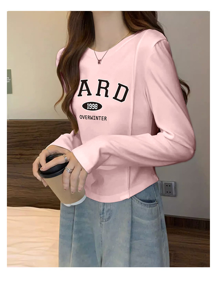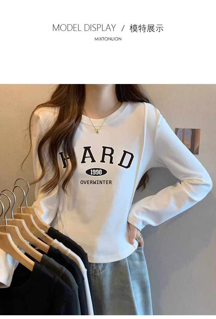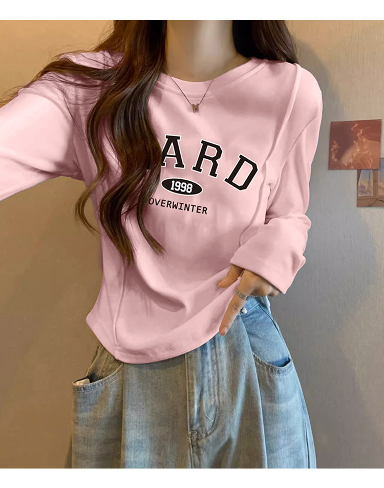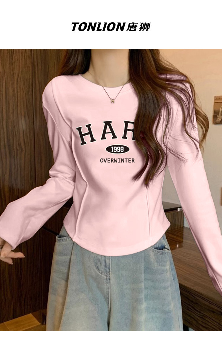 唐狮2026秋季长袖T恤女圆领字母印花显瘦早秋韩系穿搭超好看上衣
