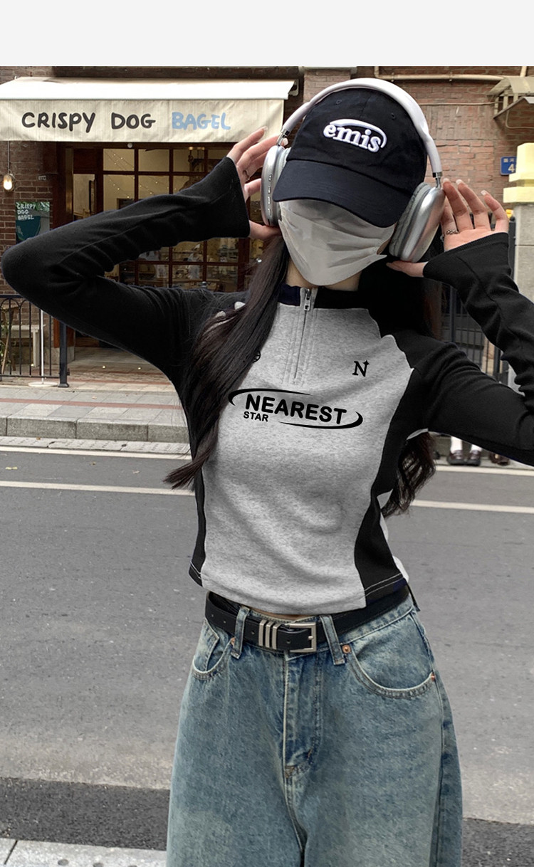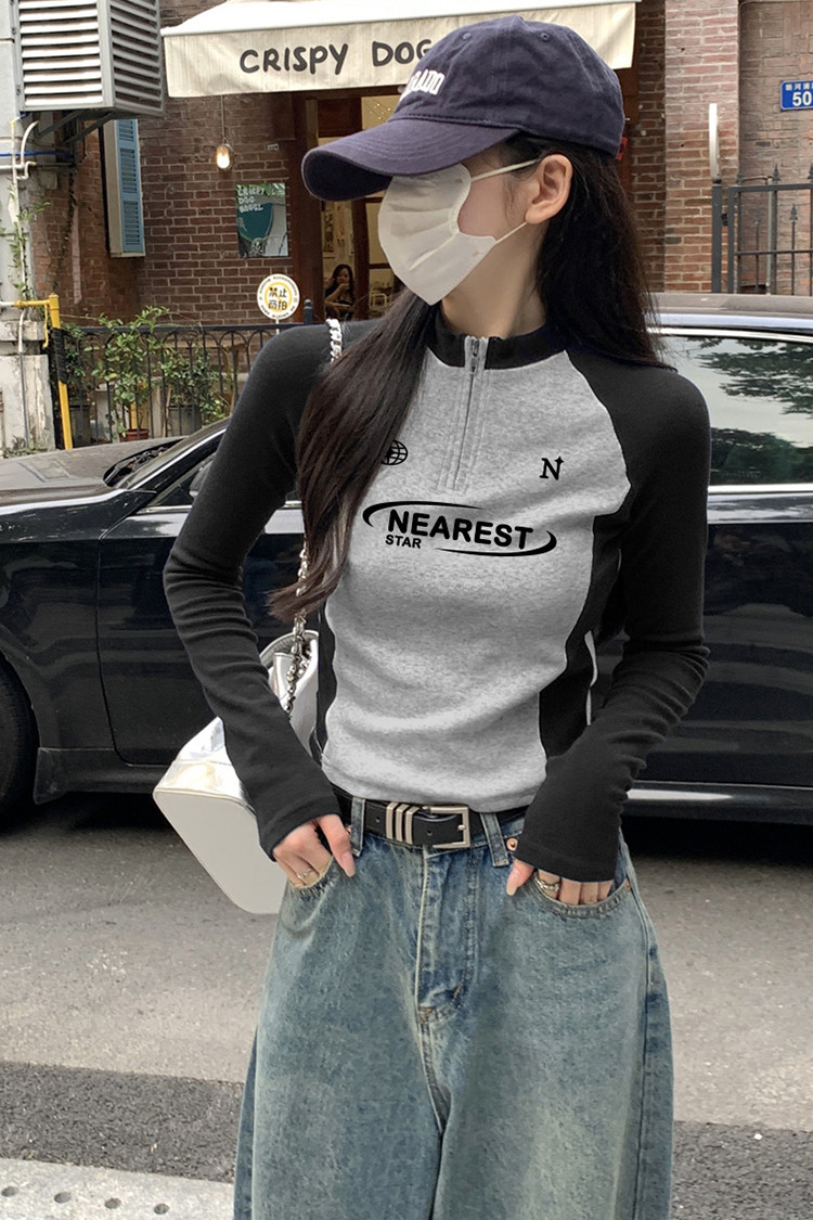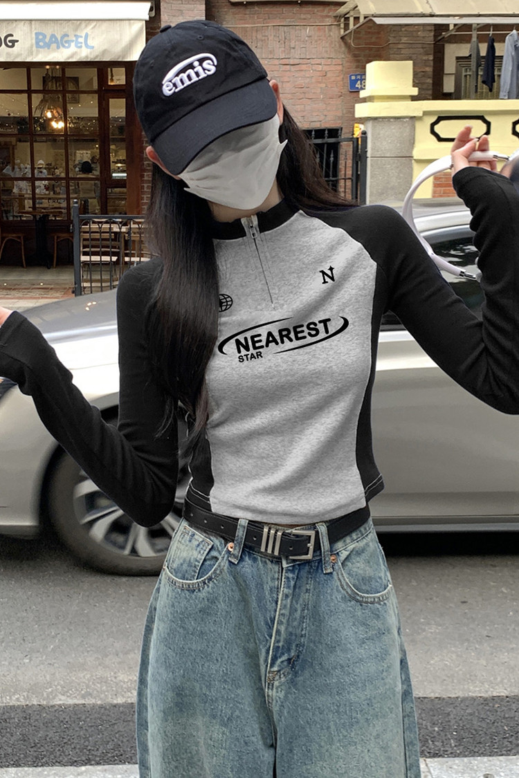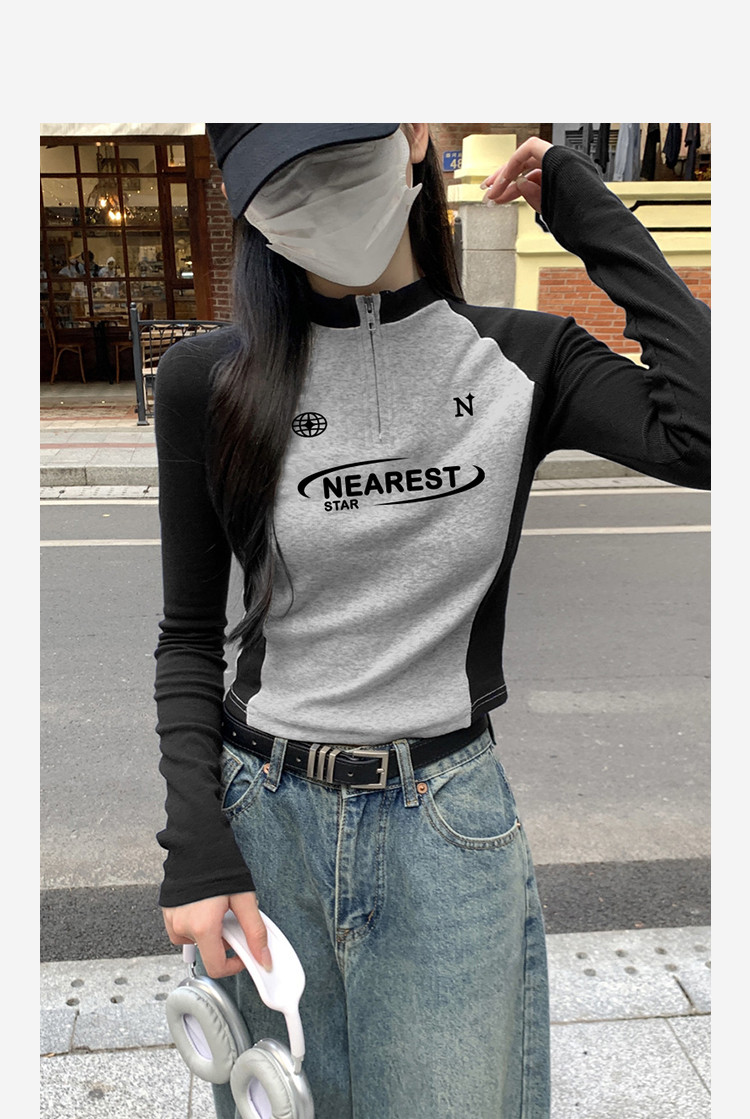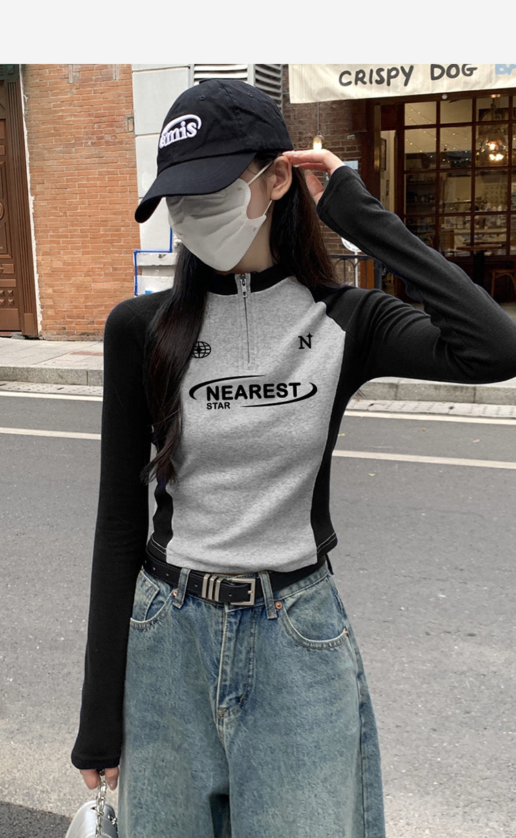 唐狮2026春秋季女长袖T恤立领拉链插肩袖修身显瘦百搭时尚设计感