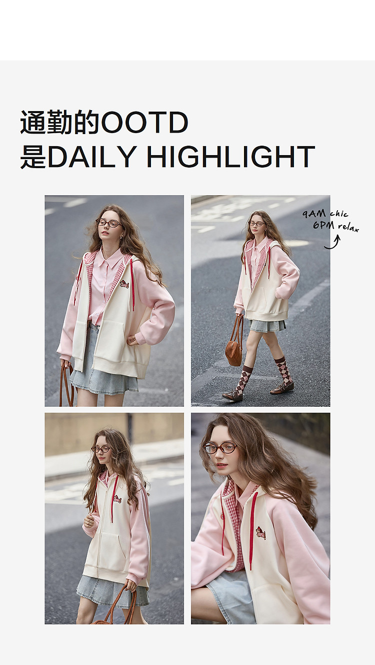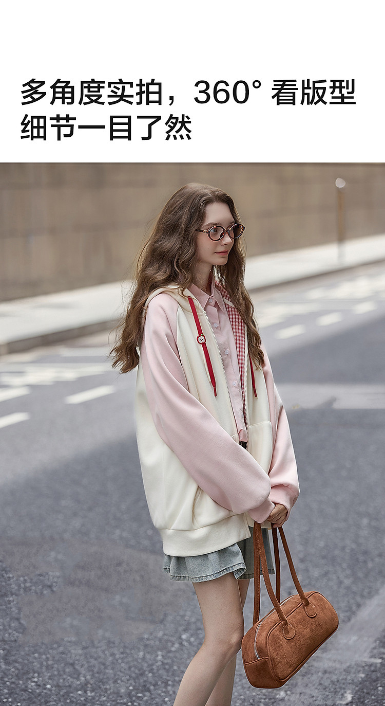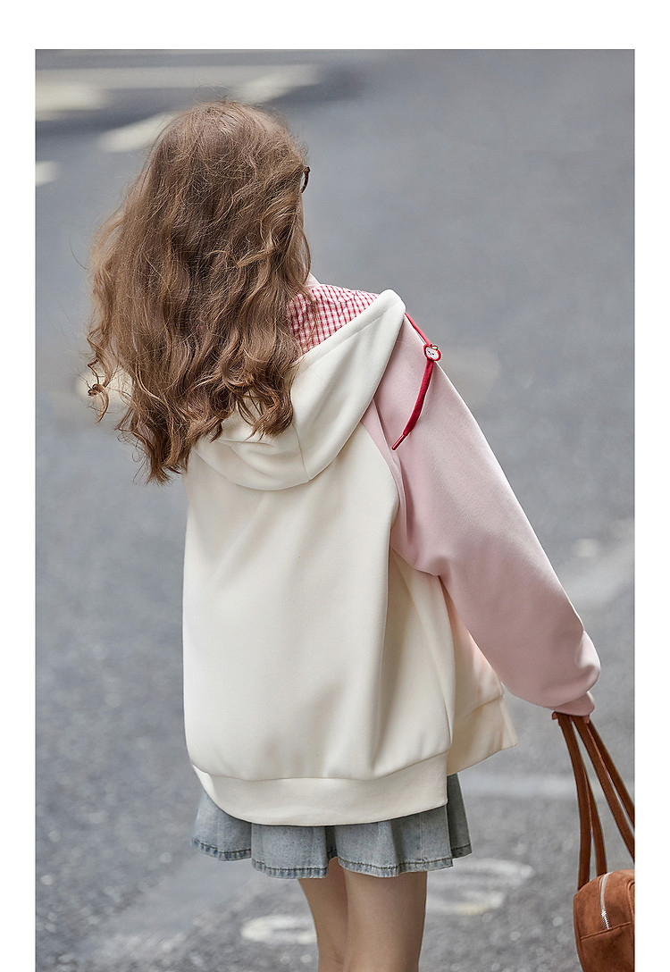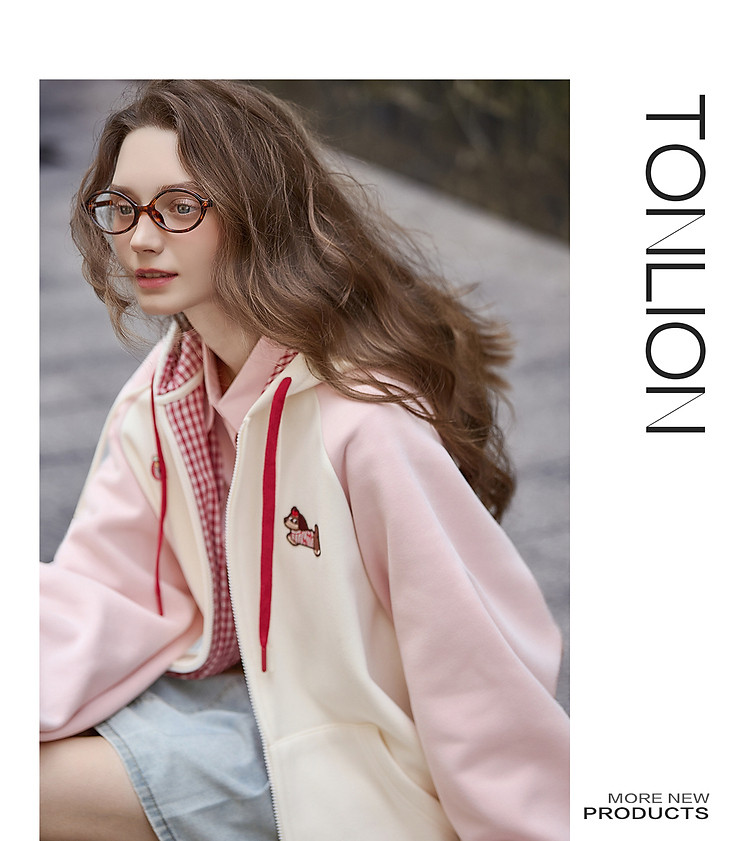 唐狮25秋冬连帽外套女针织插肩袖撞色可爱风学生小个子加绒外套