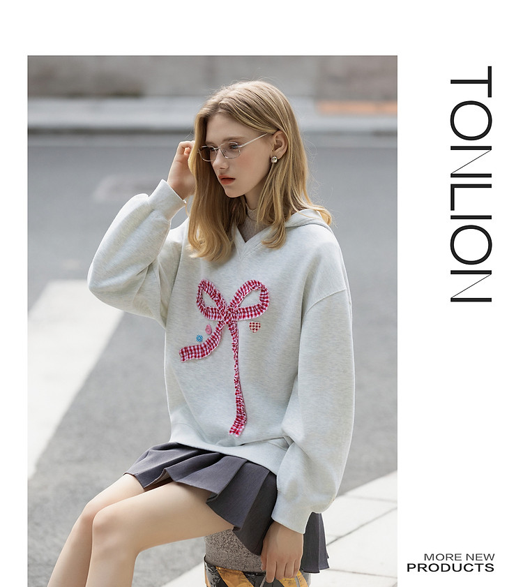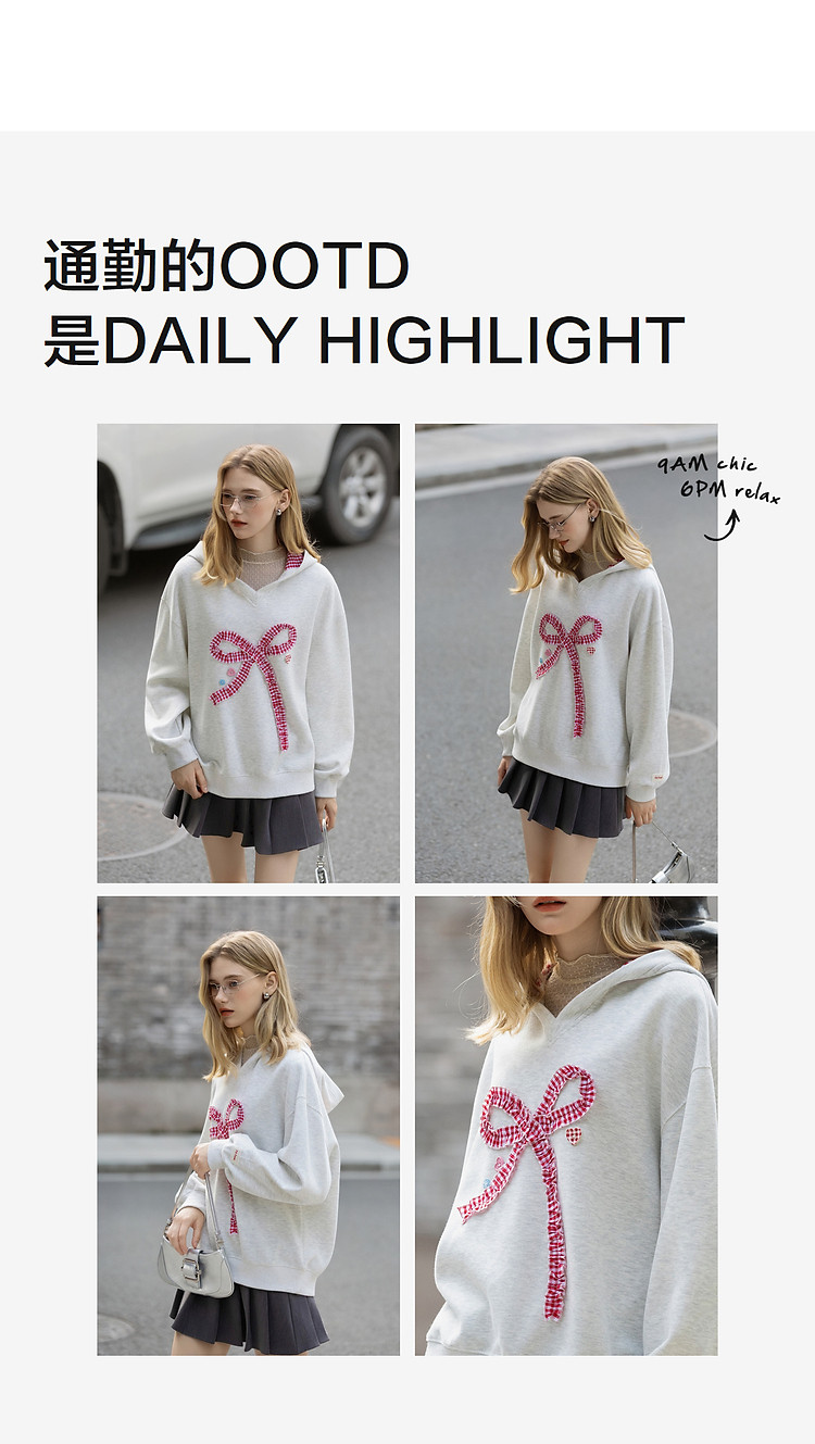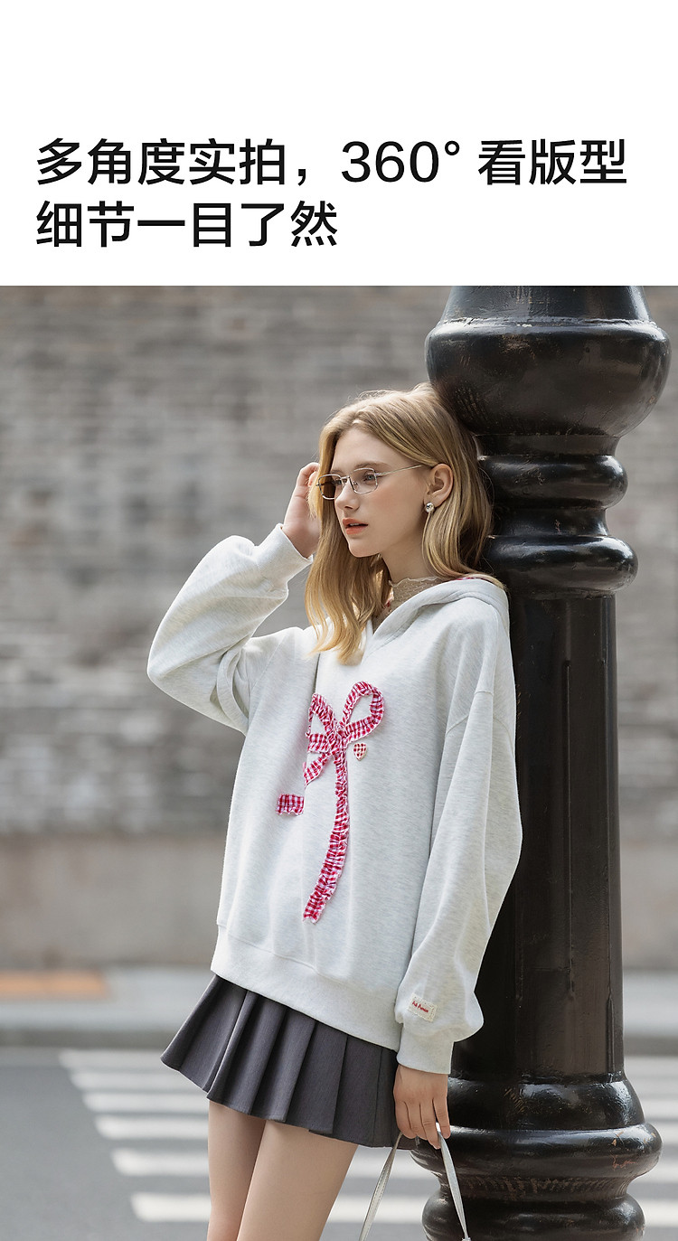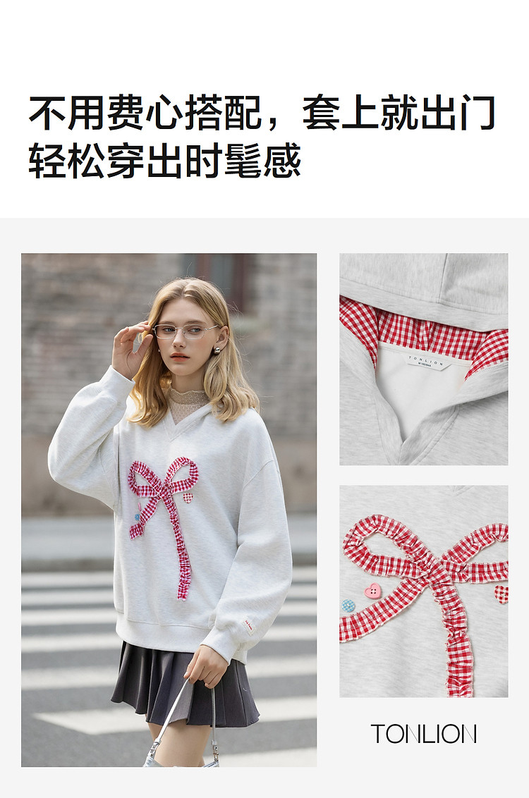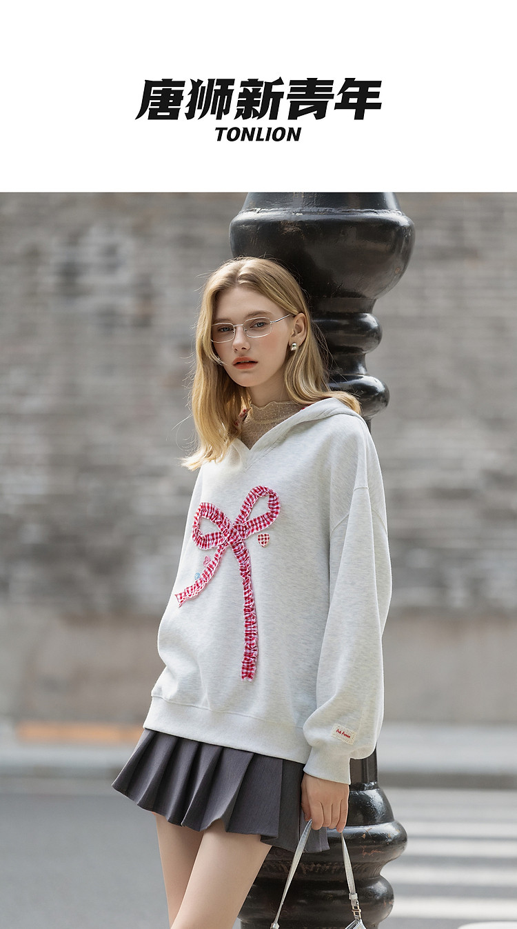 唐狮2026秋冬款卫衣女高级感洋气蝴蝶结设计感温柔连帽套头卫衣