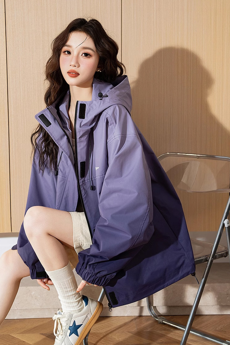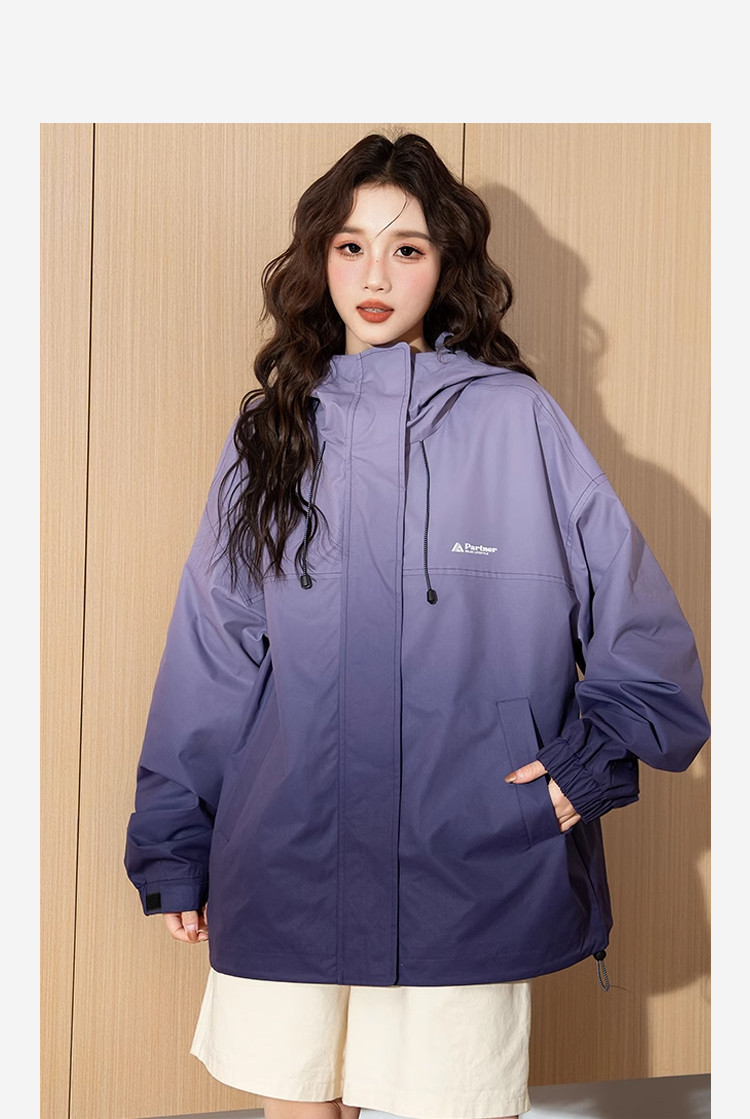 【防水】唐狮2026秋冬季新款渐变连帽外套女冲锋少年上衣休闲运动