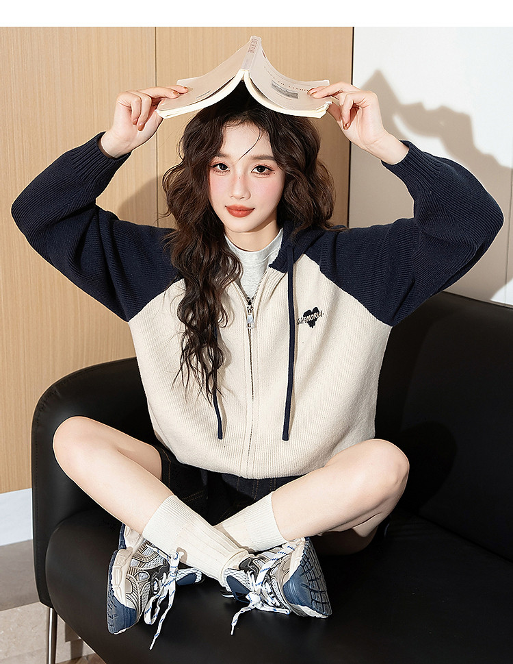 唐狮2026秋冬新款女毛衣开衫连帽拉链短款外套针织衫百搭上衣潮